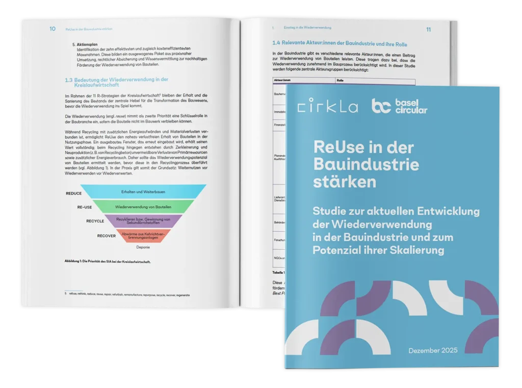 Weniger als 1 % der Bauteile in der Schweiz werden nach einem Rückbau wiederverwendet – trotz des enormen Potenzials für Klimaschutz und Ressourceneffizienz. Eine neue Studie von Cirkla im Auftrag von BaselCircular zeigt, wo die Baubranche heute steht, welche Hindernisse ReUse bremsen und wie die Wiederverwendung im Bau als neuer Standard Fuss fassen kann.